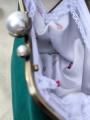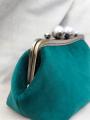Изумрудно-зеленый бархат, винтажная застежка с жемчужными акцентами и шелковая подкладка с цветочным рисунком создают неповторимую атмосферу утонченности.
