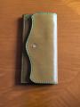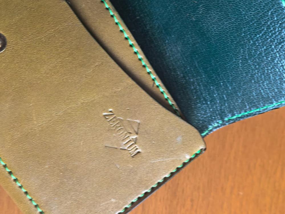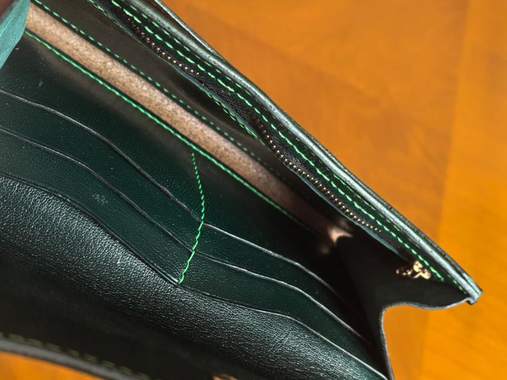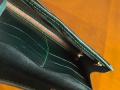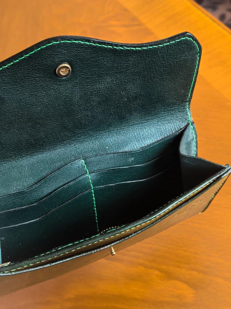 Изнутри кошелёк отделан зелёной кожей козы.